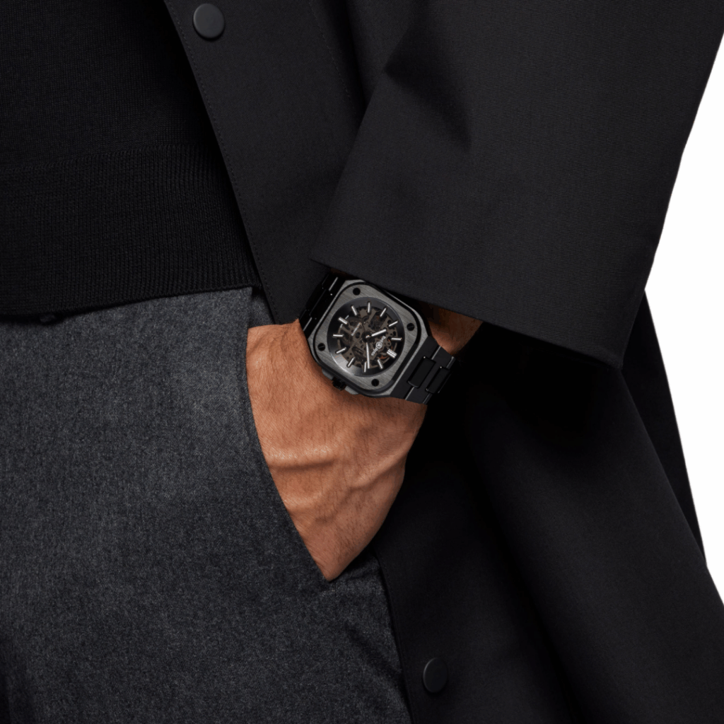 El BR 05 Black Ceramic introduce la cerámica negra en la línea BR 05 por primera vez, aportando resistencia total a los arañazos, ligereza y un look decididamente contemporáneo. Disponible en tres versiones —incluyendo un modelo esqueleto y una edición limitada con luminiscencia verde—, esta serie combina el acabado pulido satinado con la estética monocromática para un impacto visual máximo.