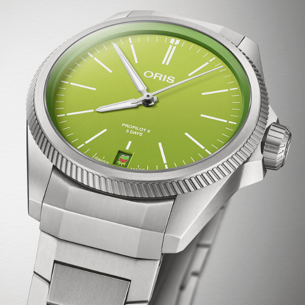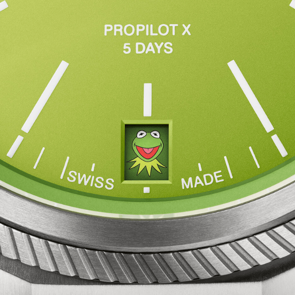 El ProPilot X Kermit Edition cuenta con una esfera verde y una característica muy divertida el primer día de cada mes, cuando aparece la cara de Gustavo en la ventana de la fecha.