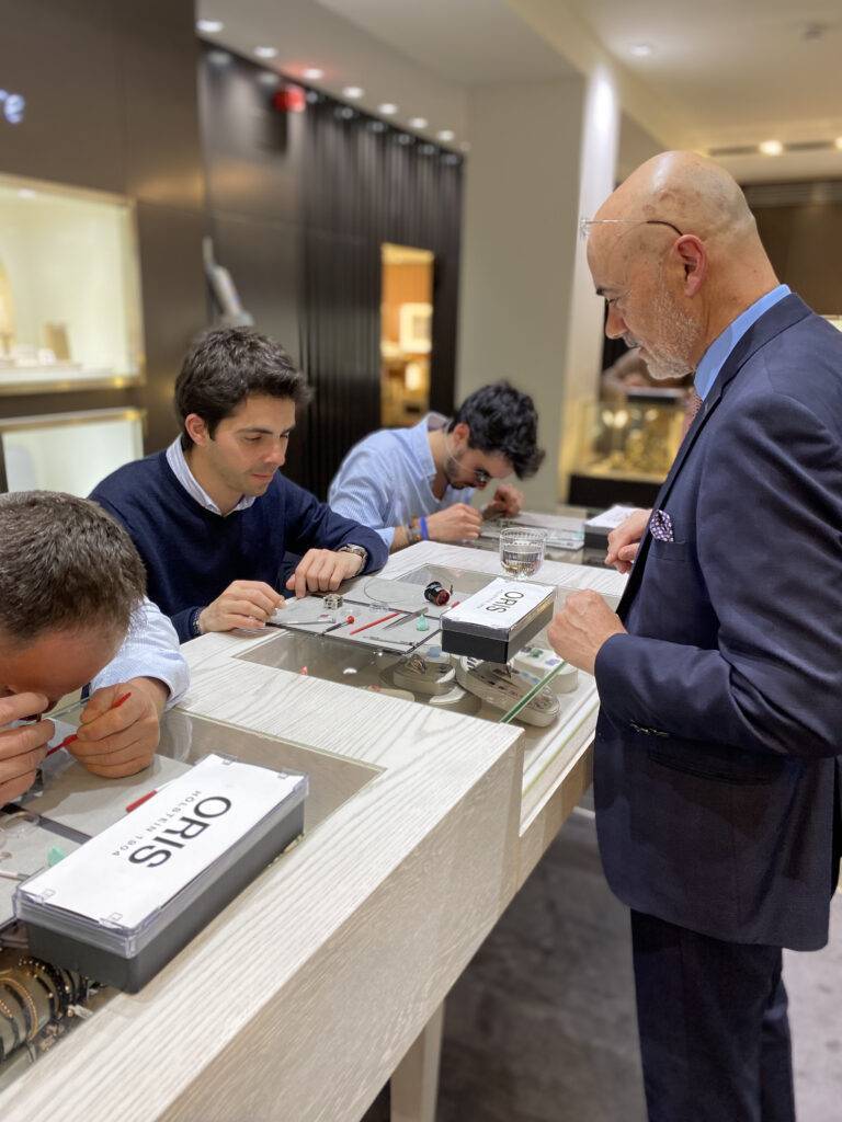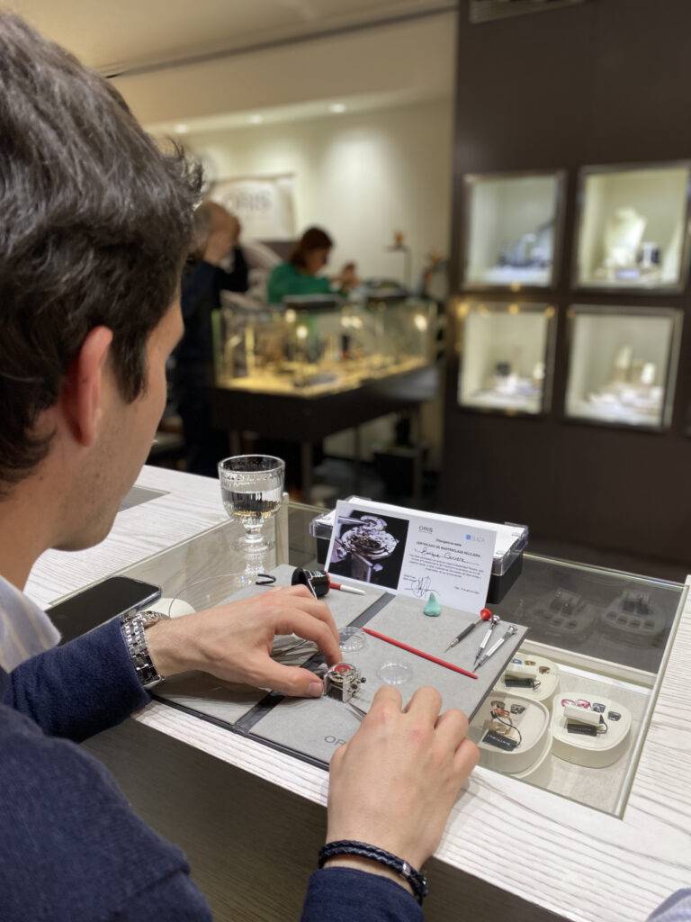 El pasado jueves 13 de abril, Joyería Suiza tuvo el honor de acoger la masterclass de ORIS, un evento exclusivo de la prestigiosa marca de relojes Oris. Durante esta experiencia única, los asistentes tuvieron la oportunidad de participar en un taller de relojería donde pudieron montar parte de la maquinaria de un reloj Oris.