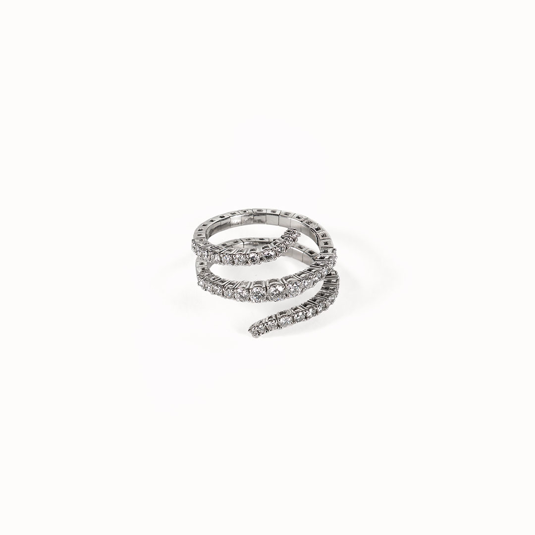Sortija de oro blanco en espiral con brillantes de 3 vueltas